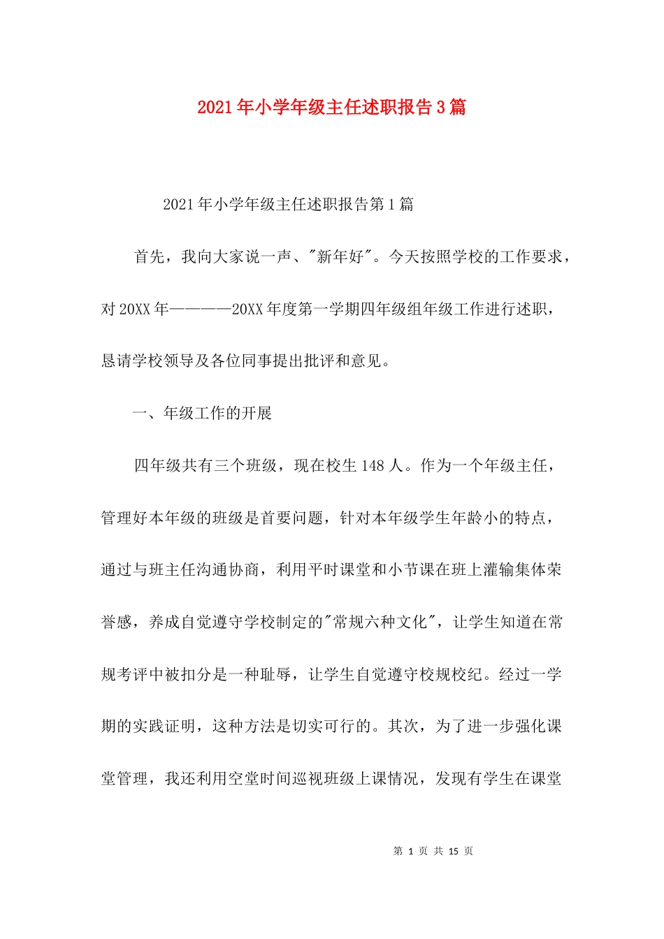(精选)2021年小学年级主任述职报告3篇_第1页