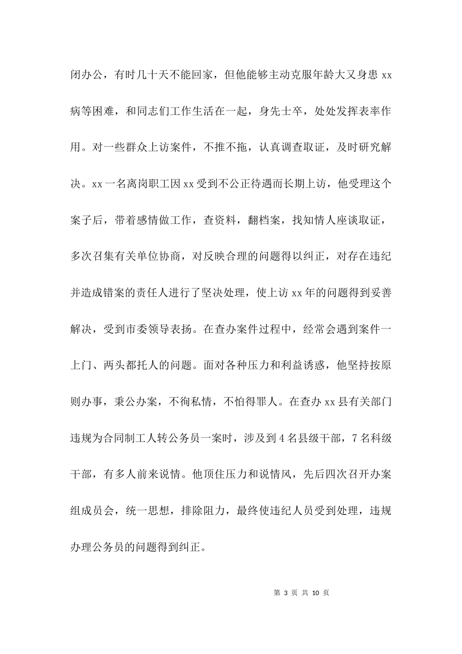 第1页共10页纪检干部考察材料3篇纪检干部考察材料第1篇注重学习,有较高的理论政策水平。该同志在积极参加机关集体学习的同时,坚持用业余...