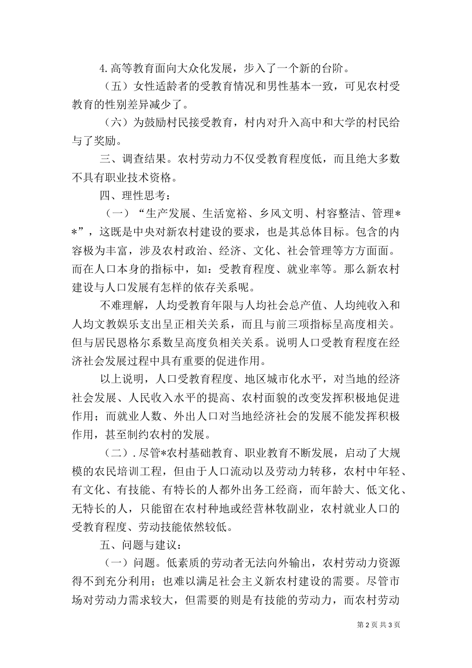 第1页共3页书山有路勤为径,学海无涯苦作舟。农村人口受教育状况考察报告农村建设的根本——教育一、实践参加者。默澜,xxx。二、实践主题...