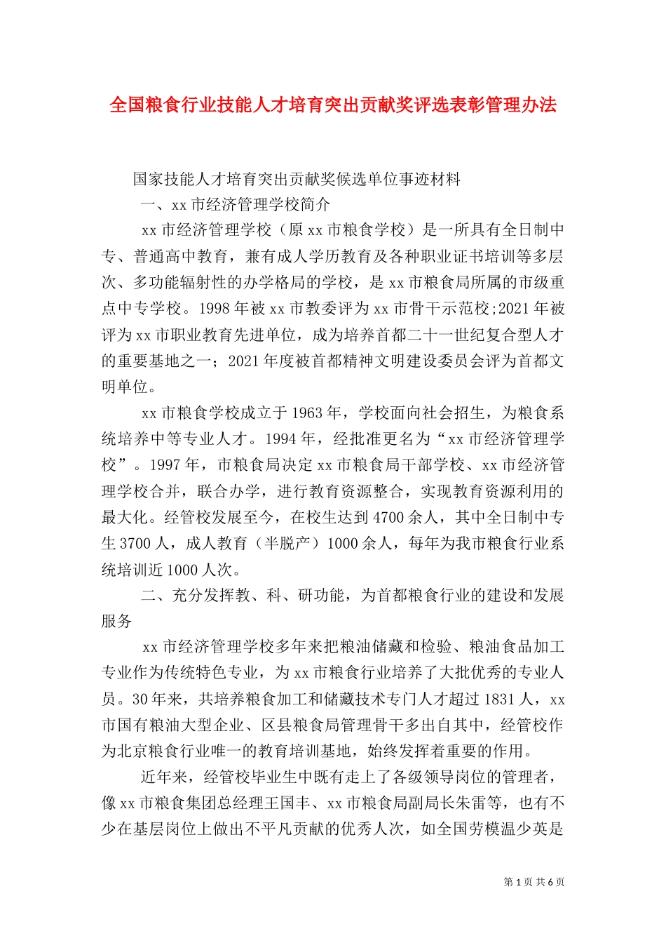 全国粮食行业技能人才培育突出贡献奖评选表彰管理办法(三)_第1页