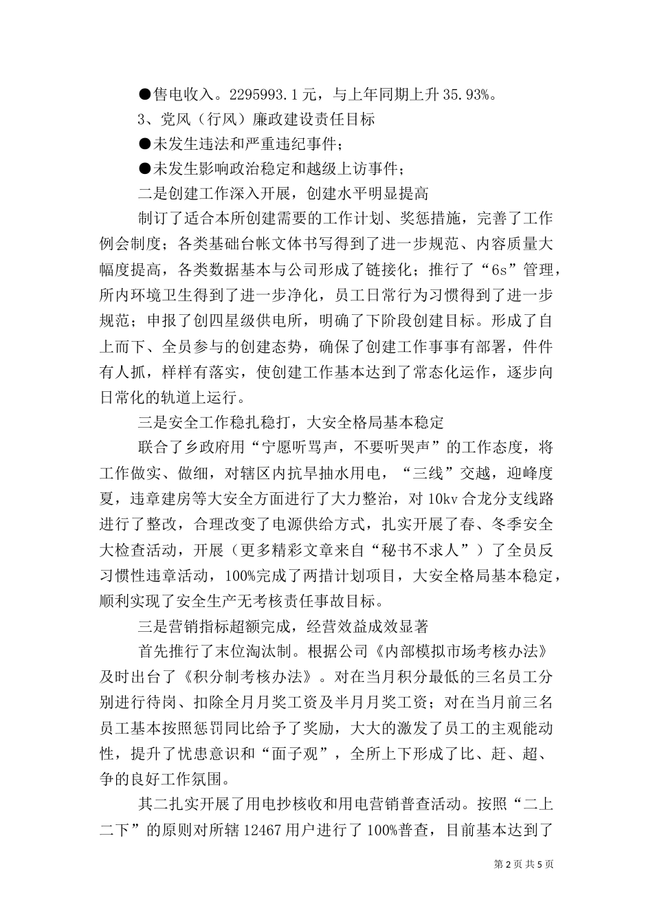第1页共5页书山有路勤为径,学海无涯苦作舟。电力所长述职报告各位领导、同志们:大家好。首先欢迎各位领导来到本所检查、指导工作。根据检...