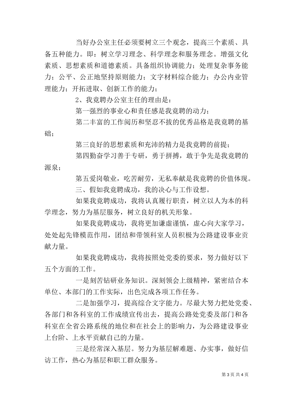 公路处办公室主任竞聘演讲稿_第3页