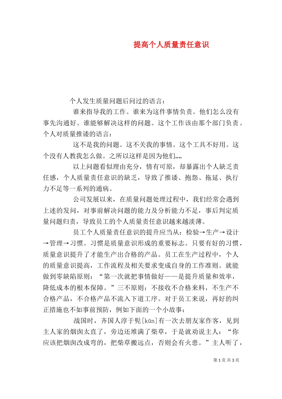 第1页共3页提高个人质量责任意识个人发生质量问题后问过的语言:谁来指导我的工作。谁来为这件事情负责。他们怎么没有事先沟通好。谁能够解...