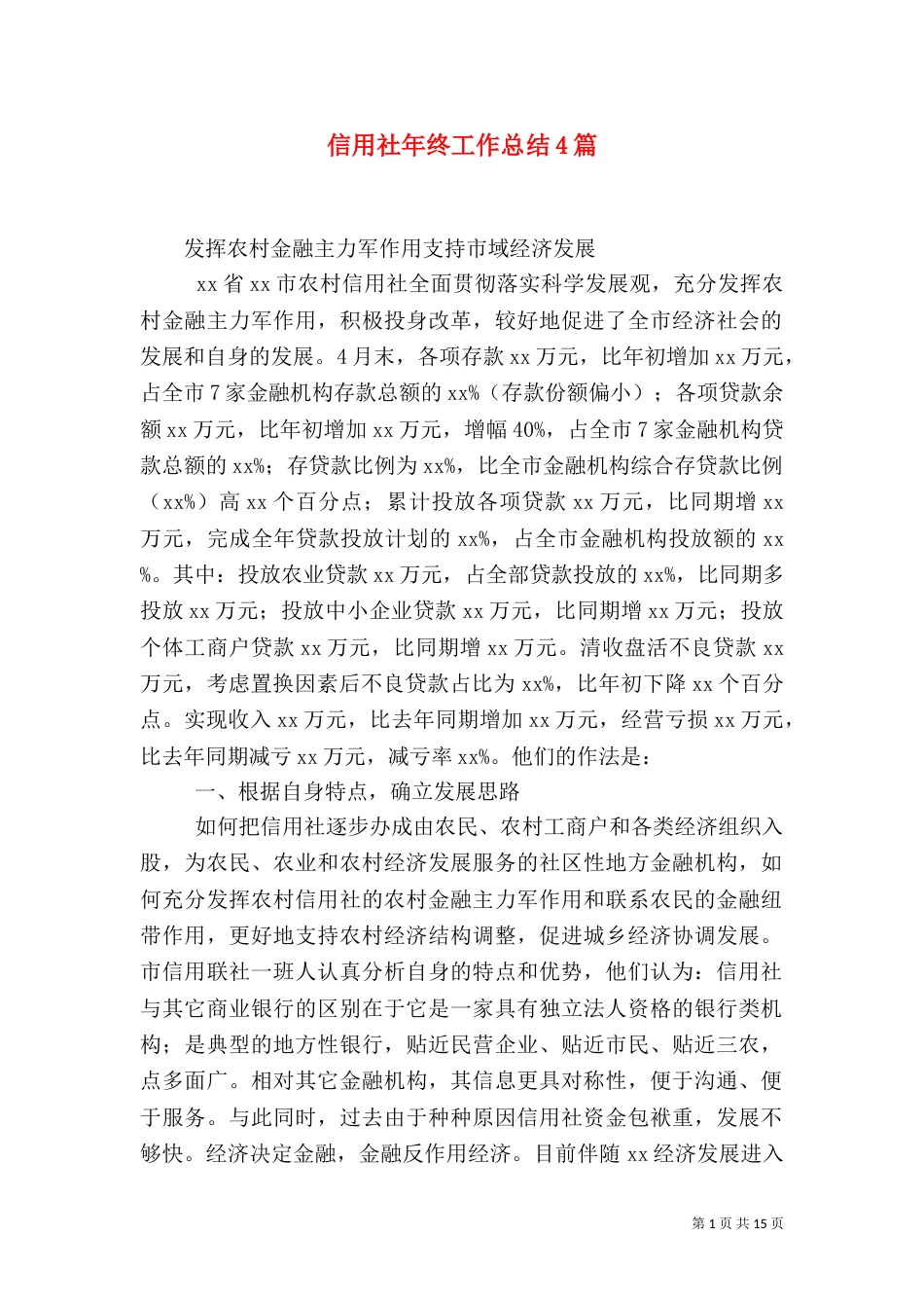 第1页共15页书山有路勤为径,学海无涯苦作舟。信用社年终工作总结4篇发挥农村金融主力军作用支持市域经济发展xx省xx市农村信用社全面贯彻落...