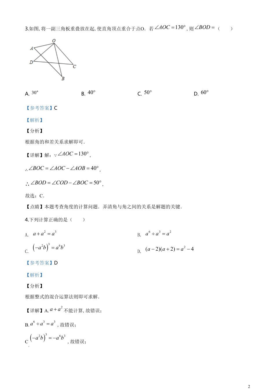 精品解析:湖北省十堰市2020年中考数学试题(解析版)_第2页