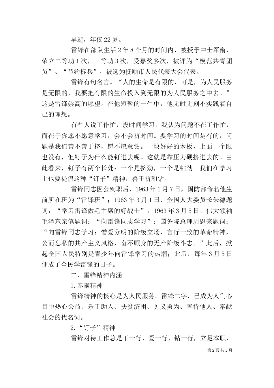 第1页共5页道德讲堂活动讲稿道德讲堂讲稿主题:雷锋,永远的精神主讲人:杜玉班级:七(1)一、雷锋的生平事迹雷锋,原名雷正兴,因出生在...