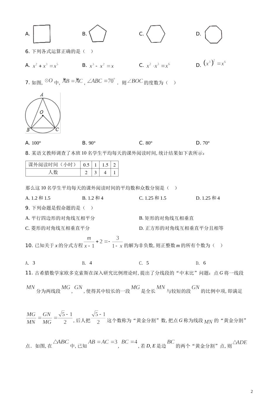 精品解析:四川省泸州市2020年中考数学试题(原卷版)_第2页