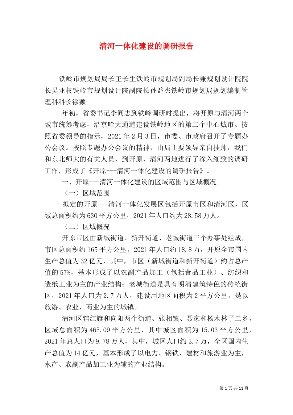 第1页共11页书山有路勤为径,学海无涯苦作舟。清河一体化建设的调研报告铁岭市规划局局长王长生铁岭市规划局副局长兼规划设计院院长吴亚权...