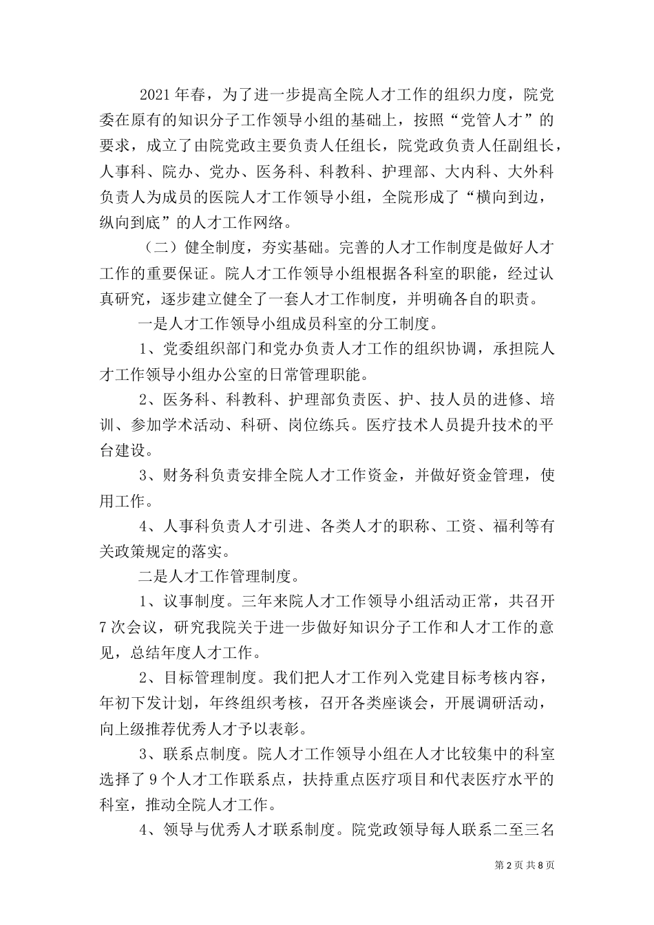 第1页共8页书山有路勤为径,学海无涯苦作舟。人民医院人才队伍建设经验交流材料重视人才工作推进医院基本现代化进程××县人民医院我院始建...