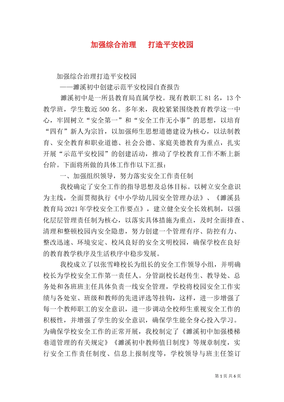 第1页共6页书山有路勤为径,学海无涯苦作舟。加强综合治理打造平安校园加强综合治理打造平安校园——濉溪初中创建示范平安校园自查报告濉溪...