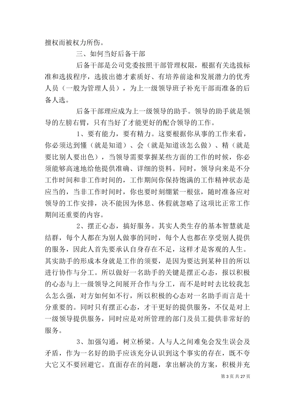 第1页共27页公司后备干部座谈会发言一、公司中层干部任职应具备以下基本条件:公司《关于中层干部的管理办法》1、思想政治素质高,坚持以__...