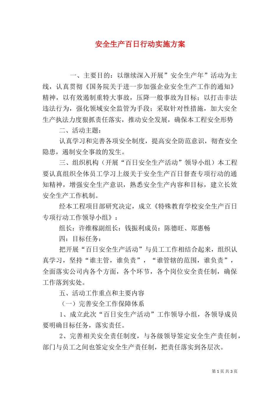 安全生产百日行动实施方案(三)_第1页
