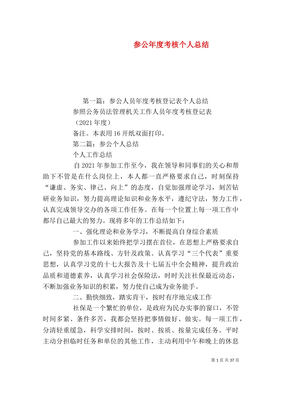 第1页共37页参公年度考核个人总结第一篇:参公人员年度考核登记表个人总结参照公务员法管理机关工作人员年度考核登记表(2021年度)备注。...