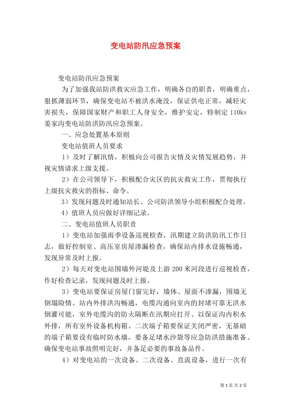 第1页共2页书山有路勤为径,学海无涯苦作舟。变电站防汛应急预案变电站防汛应急预案为了加强我站防洪救灾应急工作,明确各自的职责,明确重...
