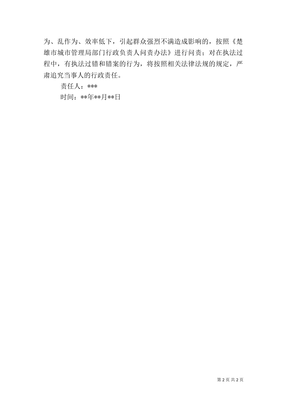 第1页共2页书山有路勤为径,学海无涯苦作舟。城管工作责任书范文一、依法行政。我局严格按照《行政许可法》、《行政处罚法》、《城市市容和...