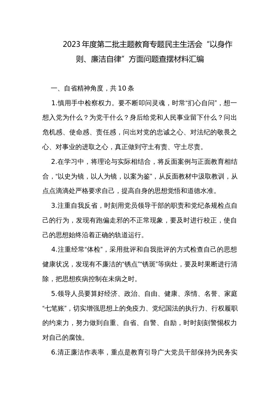 2023年度第二批主题教育专题民主生活会“以身作则、廉洁自律”方面问题查摆材料汇编_第1页