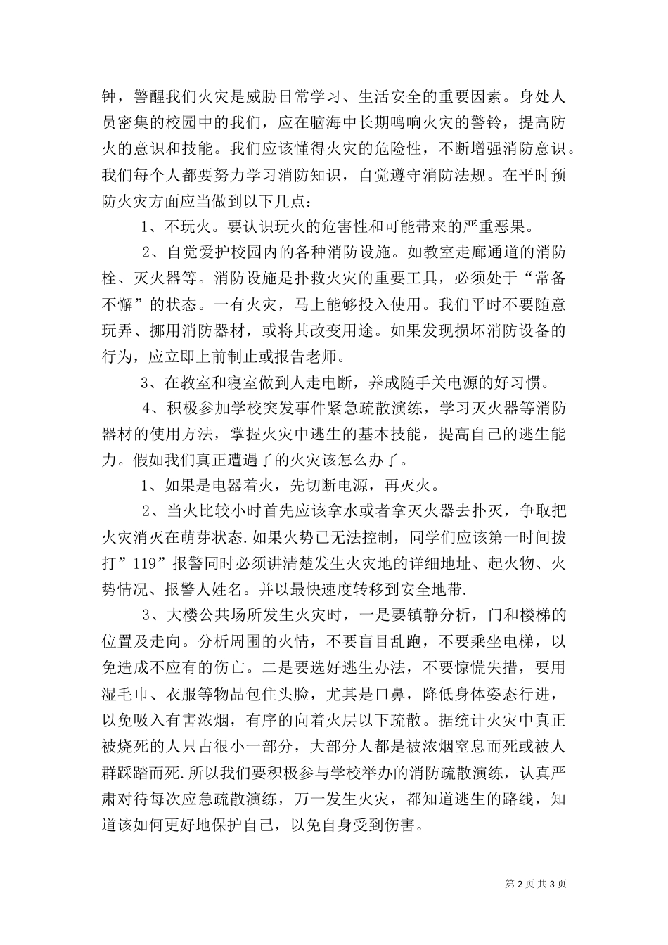 第1页共3页书山有路勤为径,学海无涯苦作舟。秋冬季安全教育讲稿秋冬季防火安全教育讲稿一(2)班亲爱的同学们:大家早上好。今天我国旗下...