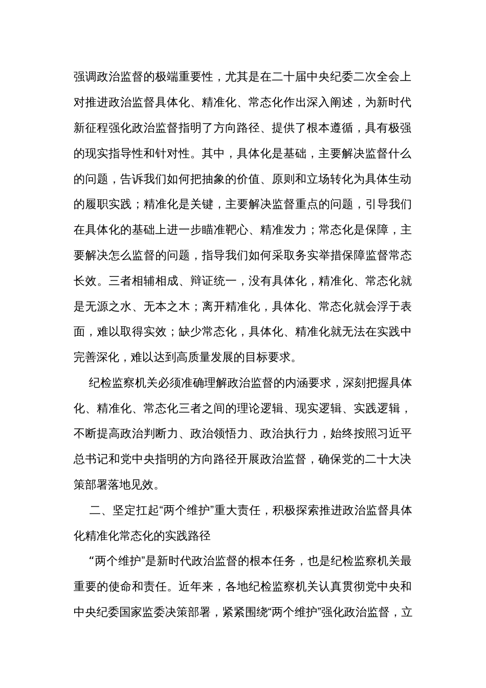 纪委书记在市委理论学习中心组主题教育专题研讨交流会上的发言同志们:党的二十大报告对“推进政治监督具体化、精准化、常态化”作出战略部...