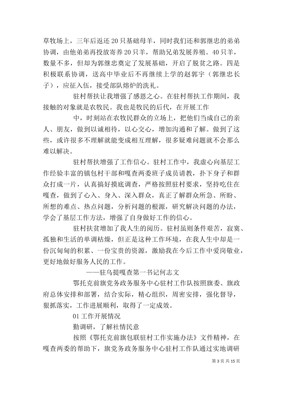 第1页共15页挂职干部半年述职报告按照自治区、市、旗的统一安排部署,xx妇女联合会驻村工作队于3月23日开始进入联系包扶的xx开展驻村工作。...