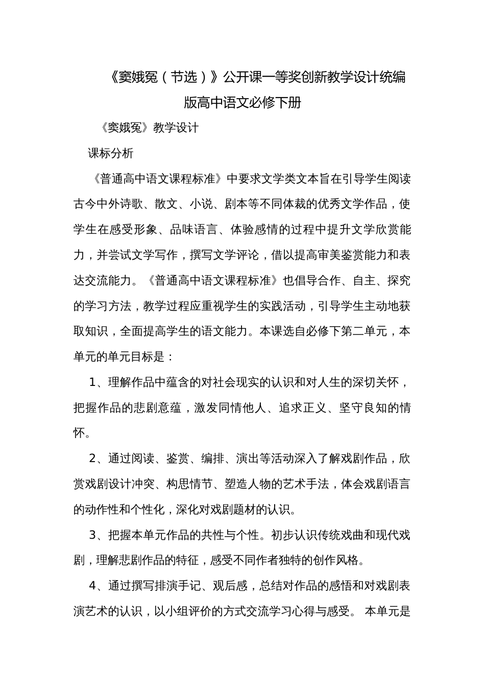 《窦娥冤(节选)》公开课一等奖创新教学设计统编版高中语文必修下册_2_第1页