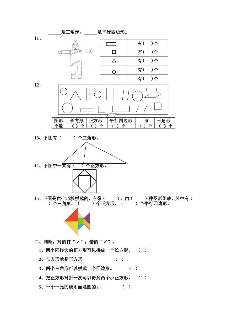 一年级下册数学第二部分认识图形、分类整理、人民币总结_第2页