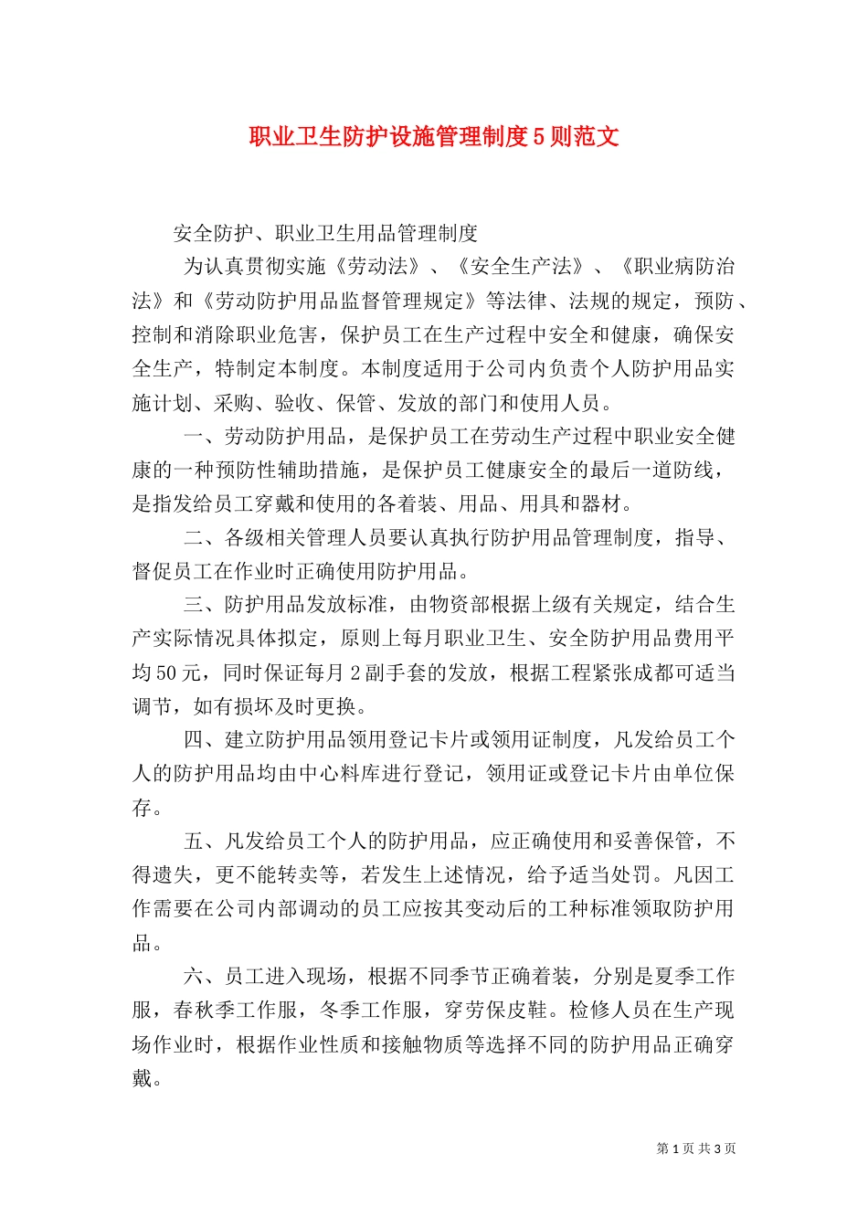 职业卫生防护设施管理制度5则范文(二)_第1页