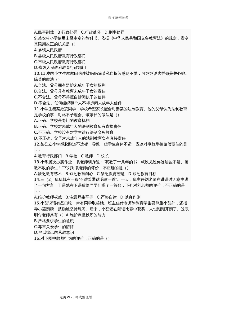 范文范例参考2017年下半年中小学教师资格考试综合素质(小学)试题注意事项:1.考试时间为120分钟,满分为150分。2.请按规定在答题卡上填涂、...