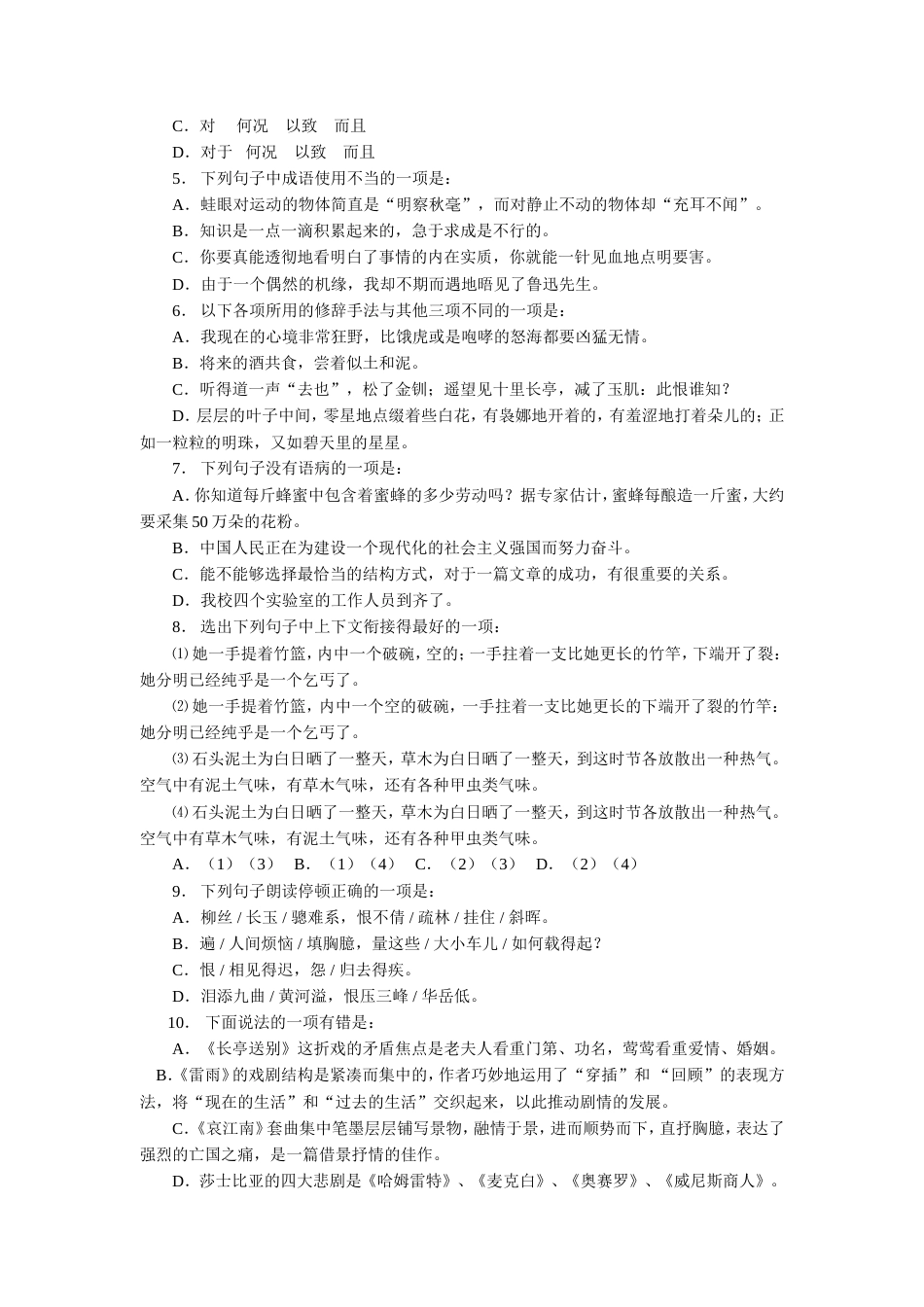 2001学年第二学期高二语文期中试卷_第3页