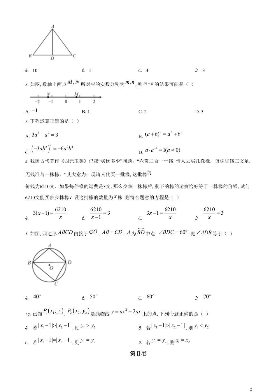 精品解析:福建省2020年中考数学试题(原卷版)_第2页