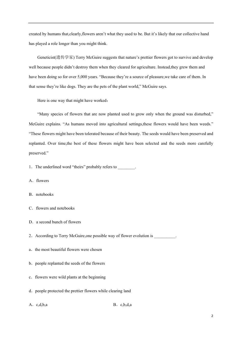 高一上学期期中考试(二)英语考试范围:xxx;考试时间:100分钟;命题人:xxx注意事项:1.答题前填写好自己的姓名、班级、考号等信息2....