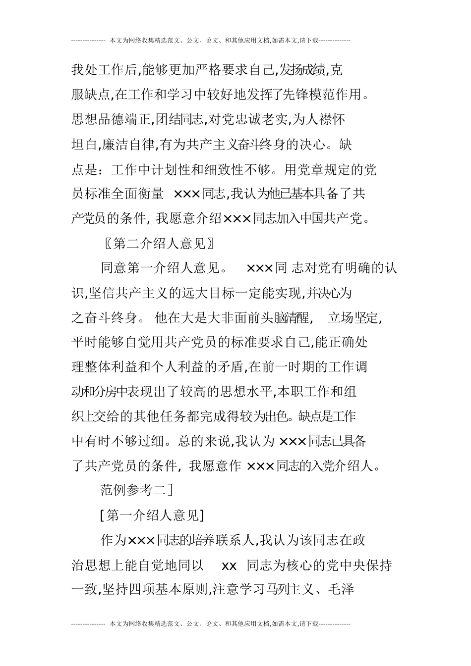---------------本文为网络收集精选范文、公文、论文、和其他应用文档,如需本文,请下载--------------第一第二入党介绍人意见怎么写本文从...