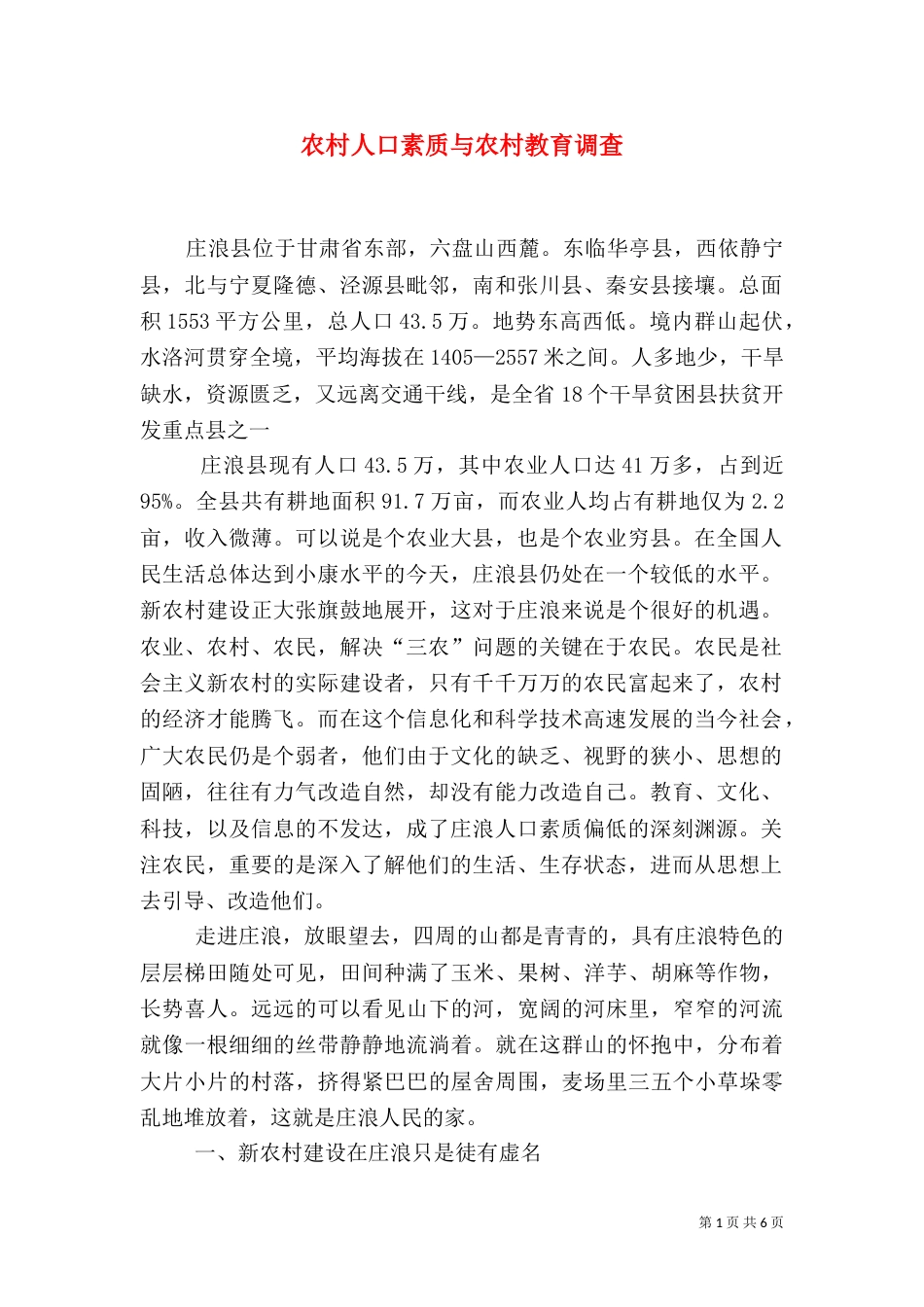 第1页共6页书山有路勤为径,学海无涯苦作舟。农村人口素质与农村教育调查庄浪县位于甘肃省东部,六盘山西麓。东临华亭县,西依静宁县,北与...