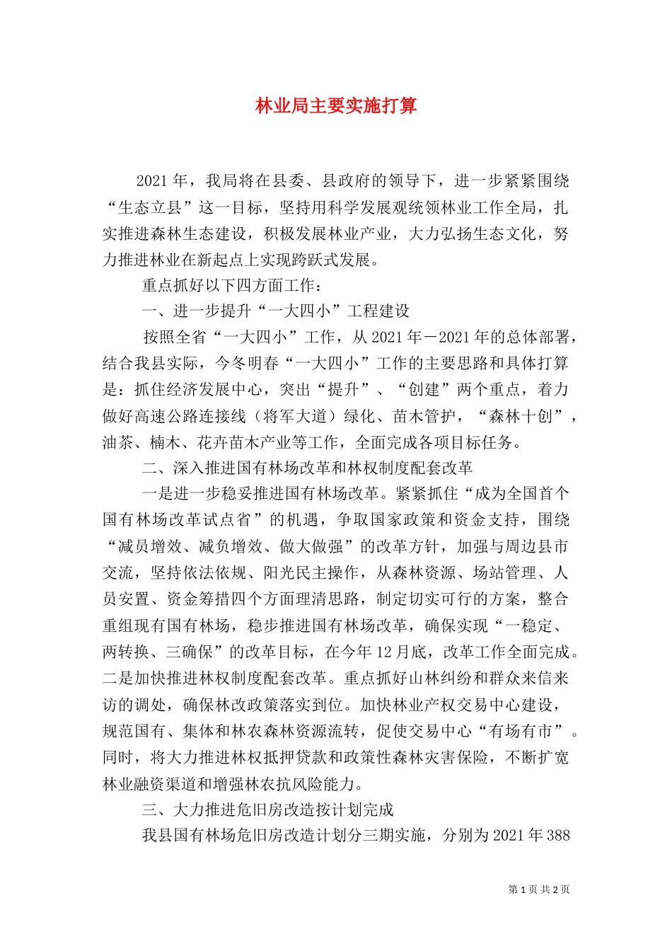 第1页共2页书山有路勤为径,学海无涯苦作舟。林业局主要实施打算2021年,我局将在县委、县政府的领导下,进一步紧紧围绕“生态立县”这一目...