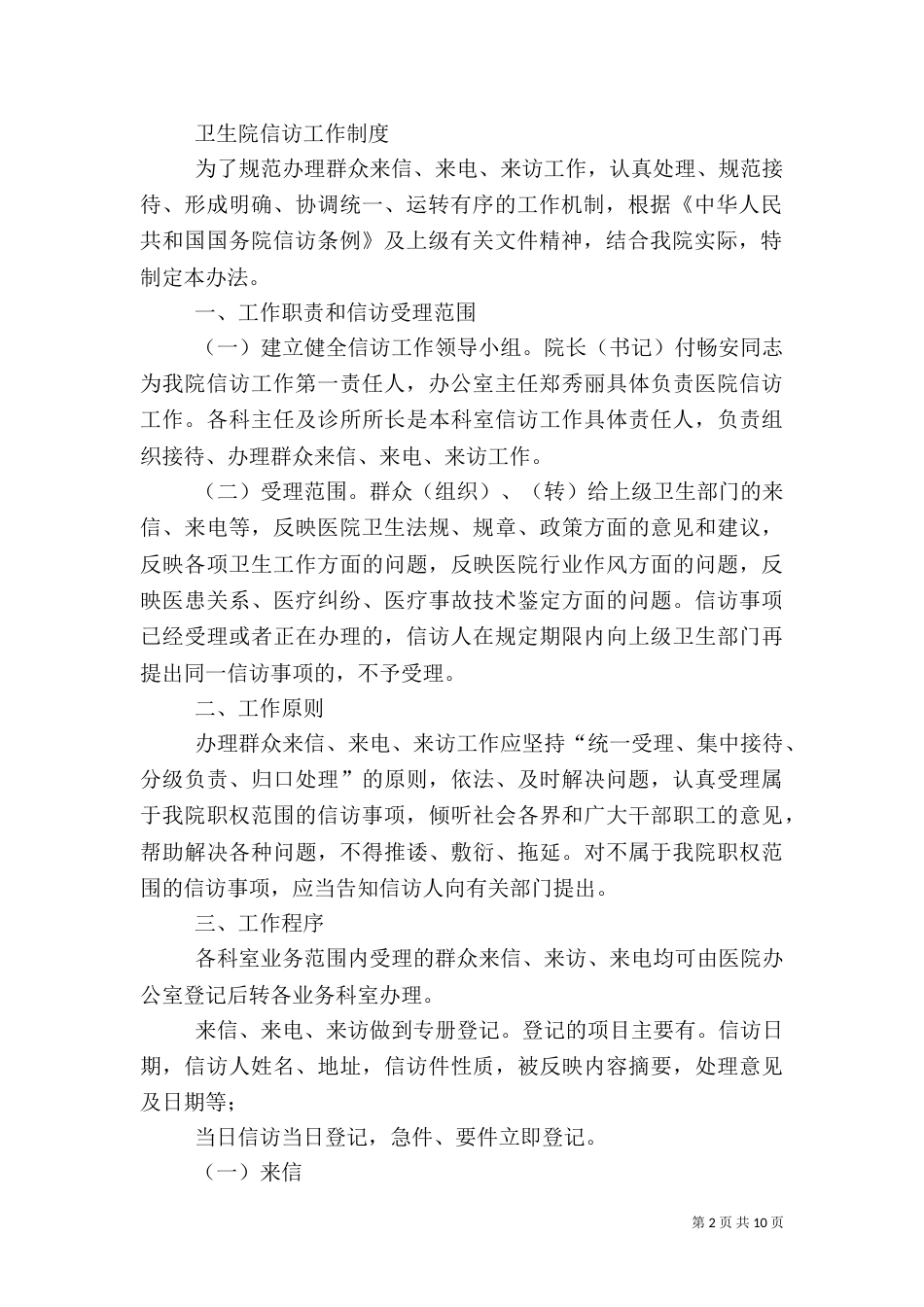 第1页共10页书山有路勤为径,学海无涯苦作舟。卫生院信访工作制度岷县中心卫生院卫生院信访工作制度一、医院有一名负责分管信访工作的责任...