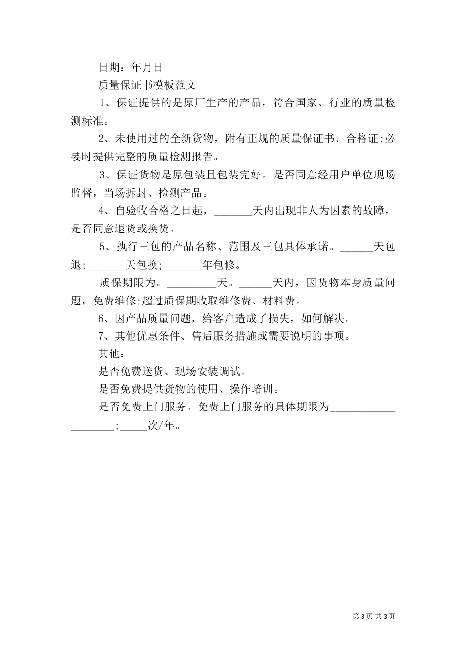 质量保证书模板优秀范文_第3页