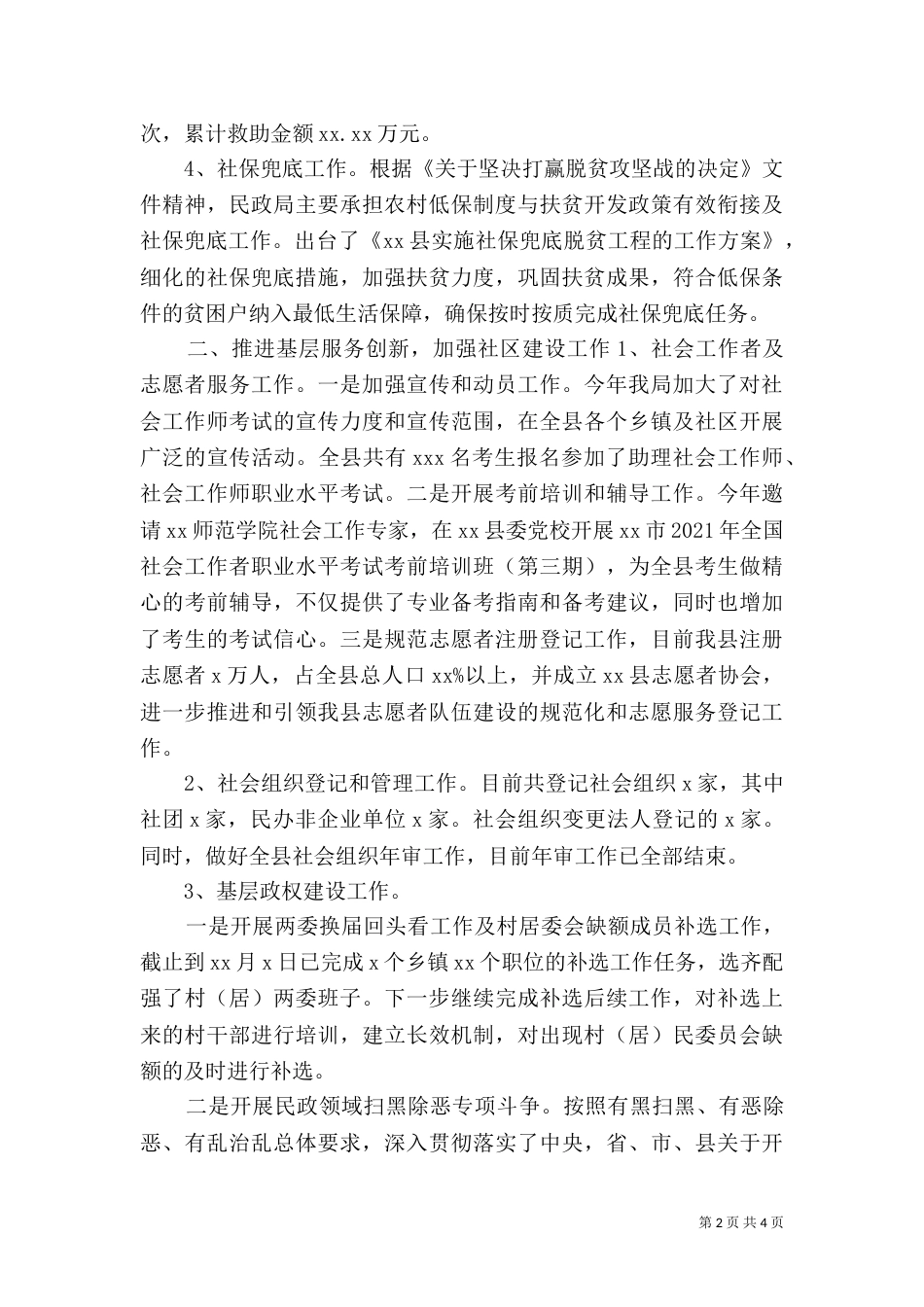 第1页共4页民政局2021年工作总结及2021年工作思路2021年工作总结一、完善社会救助体系,履行基本民生保障1、城乡居民生活最低保障工作。我...