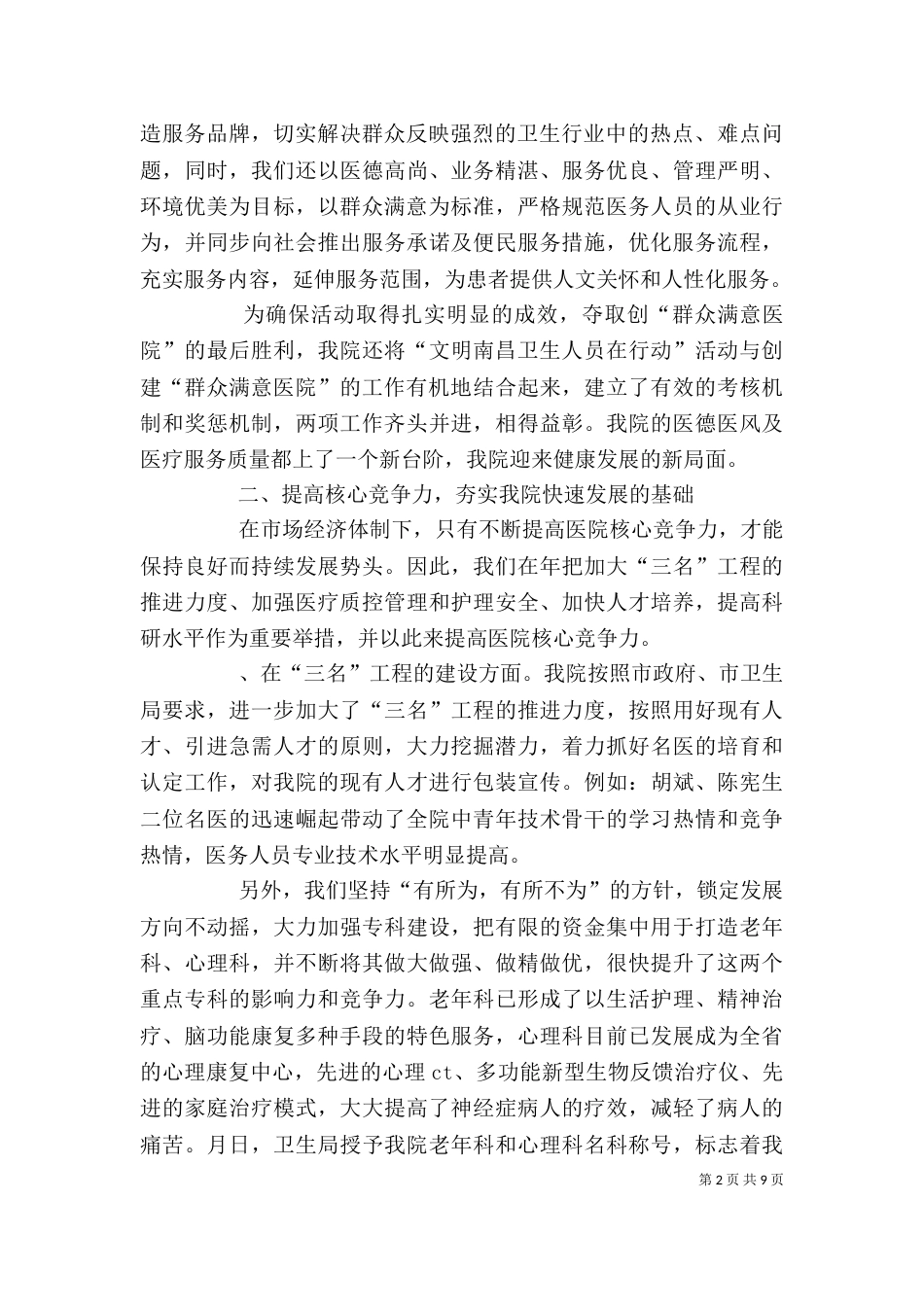 第1页共9页某年度院长述职报告某年度院长述职报告年是贯彻落实党的十六大精神,全面建设小康社会,实现南昌在某省率先崛起的重要一年,也是...
