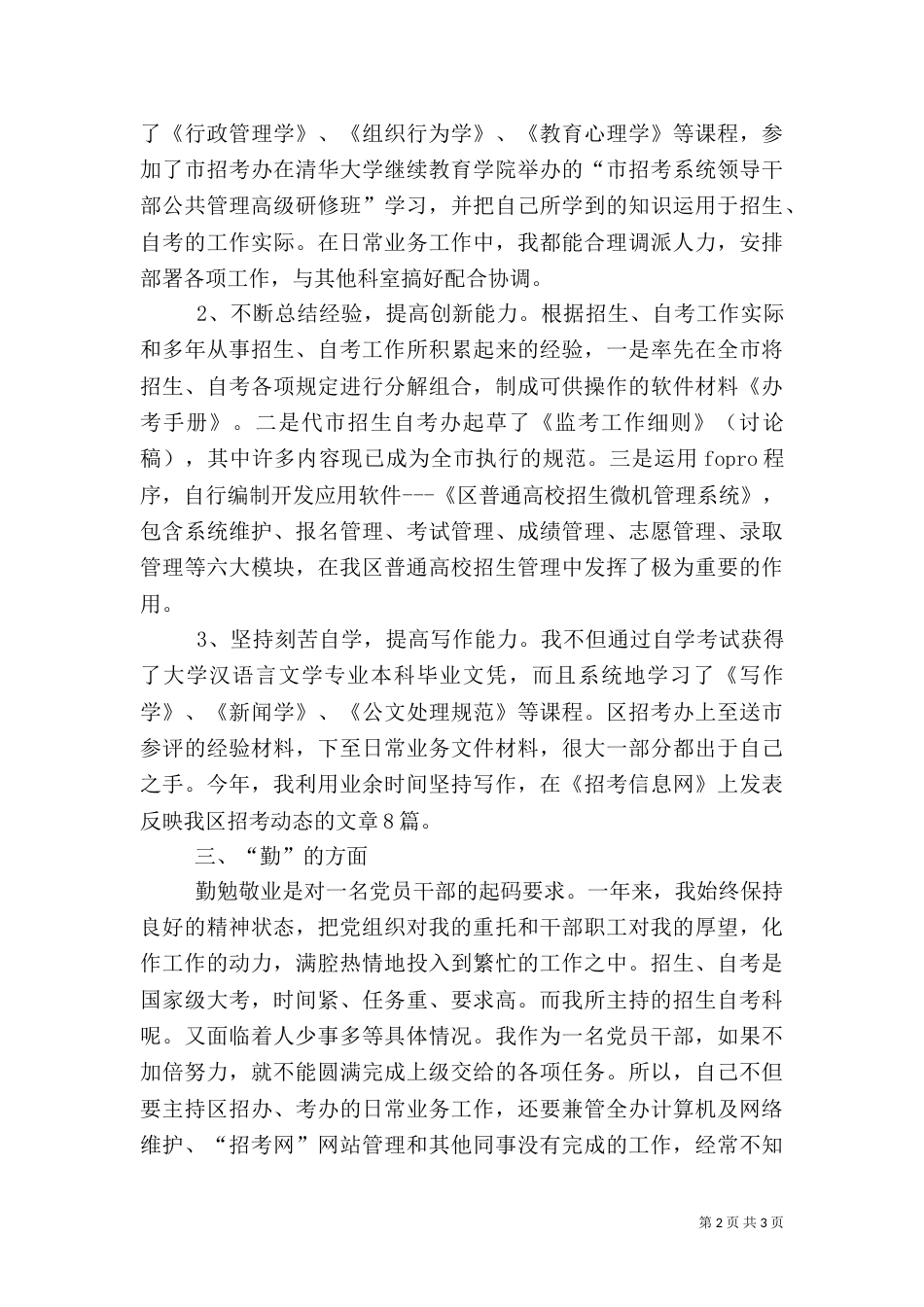 第1页共3页书山有路勤为径,学海无涯苦作舟。教委干部工作鉴定一、“德”的方面高尚的道德情操是一个人立身和成就事业的重要基础。作为一名...