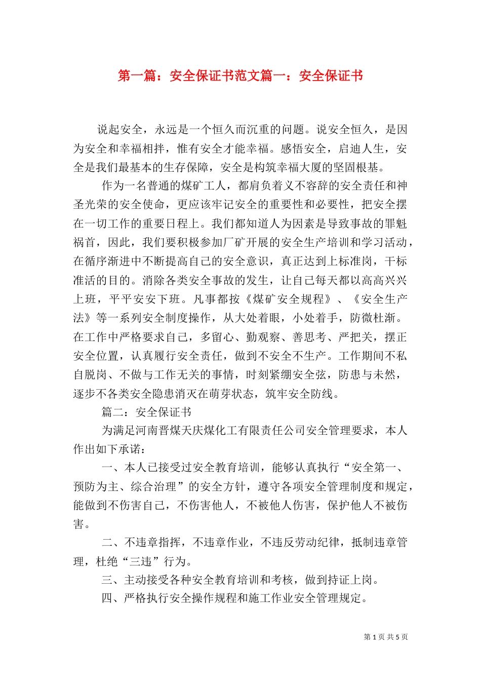 第一篇:安全保证书范文篇一:安全保证书_第1页