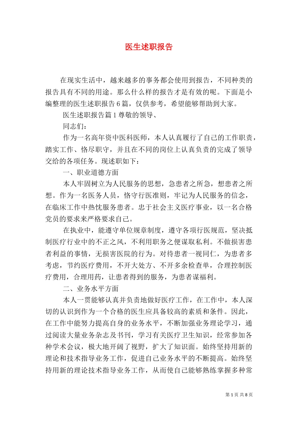 第1页共8页书山有路勤为径,学海无涯苦作舟。医生述职报告在现实生活中,越来越多的事务都会使用到报告,不同种类的报告具有不同的用途。那...
