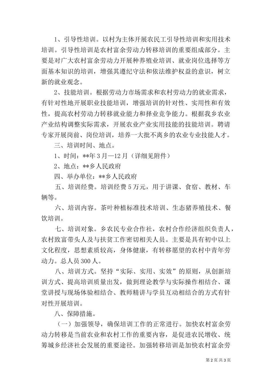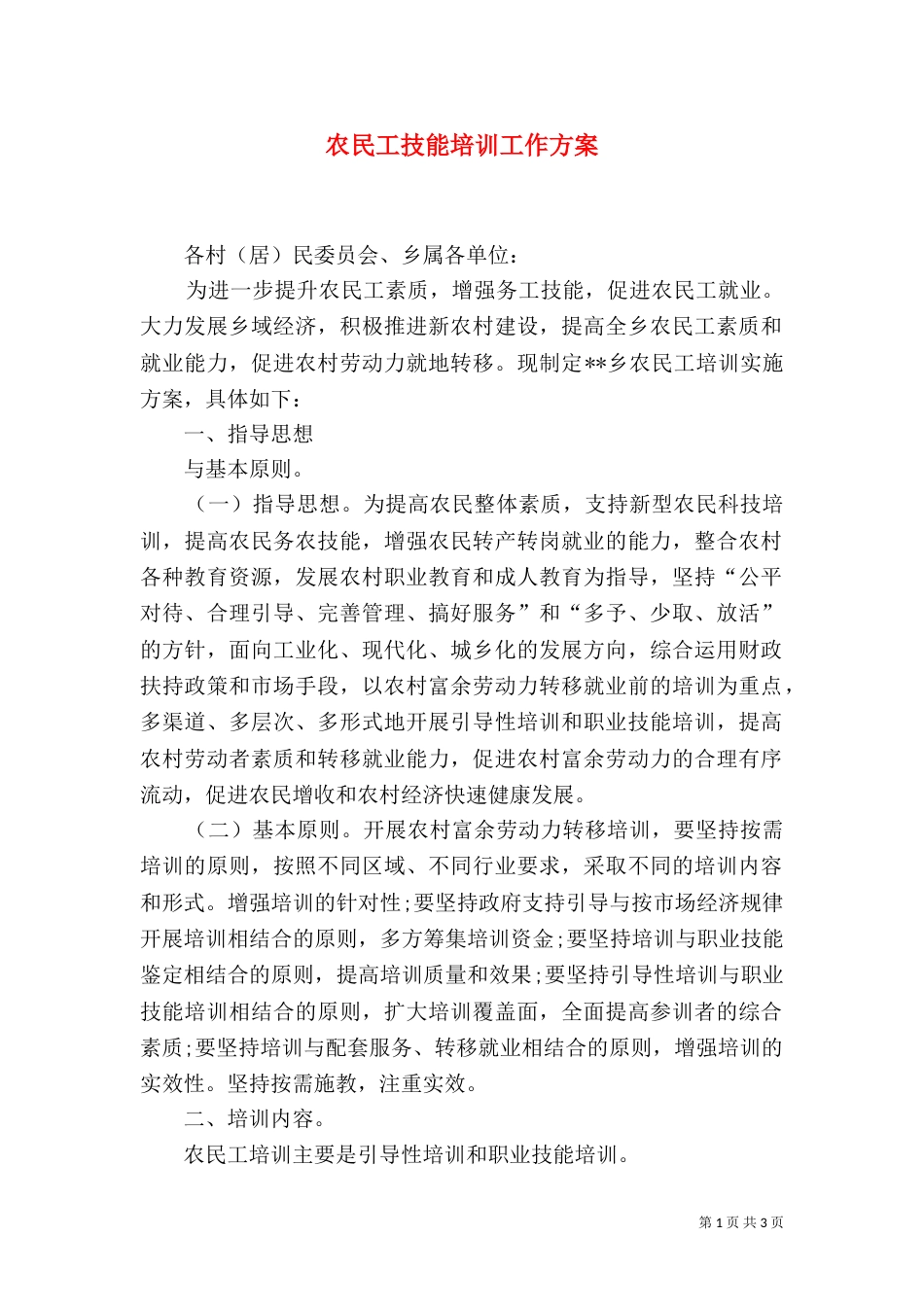 第1页共3页农民工技能培训工作方案各村(居)民委员会、乡属各单位:为进一步提升农民工素质,增强务工技能,促进农民工就业。大力发展乡域...