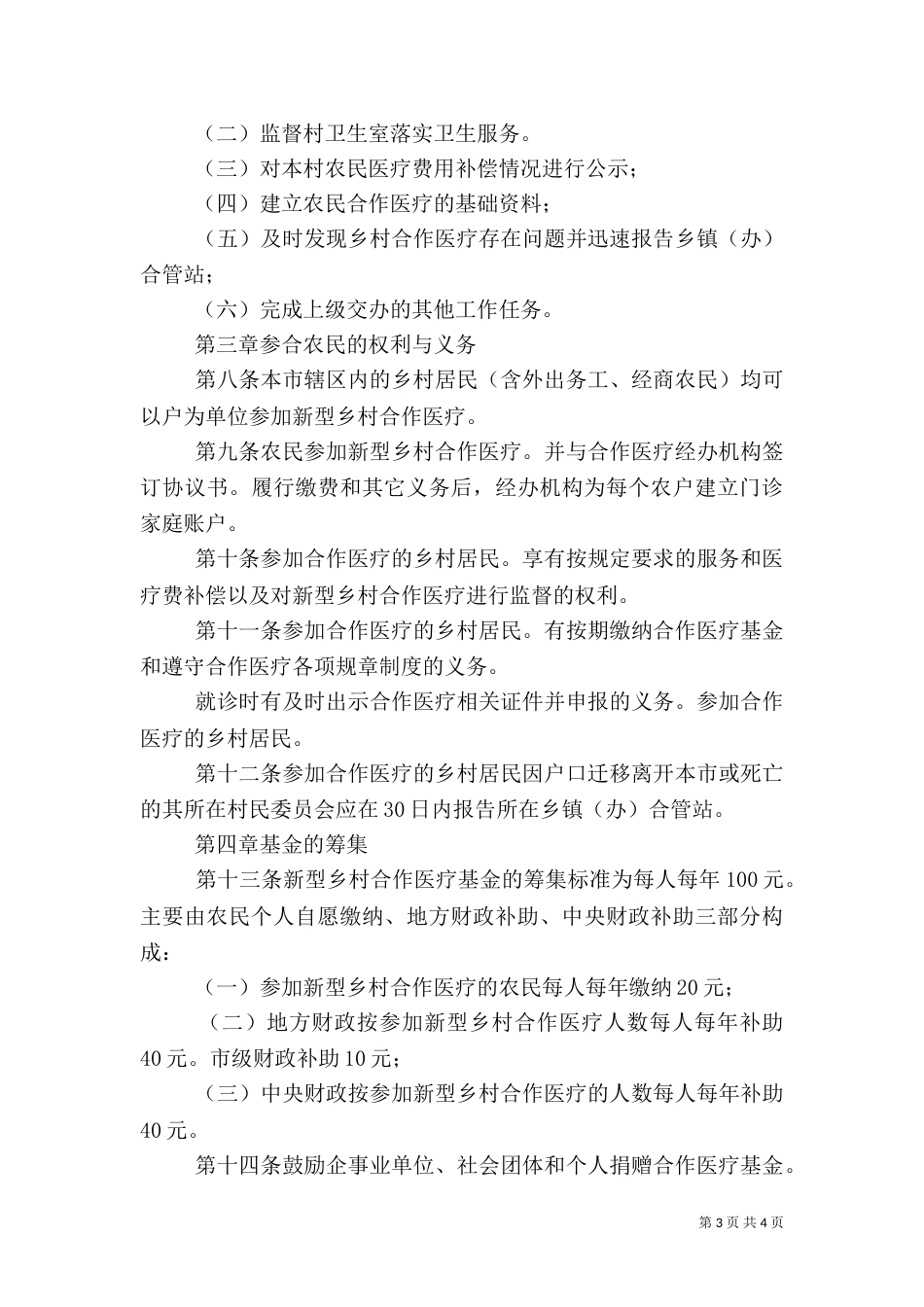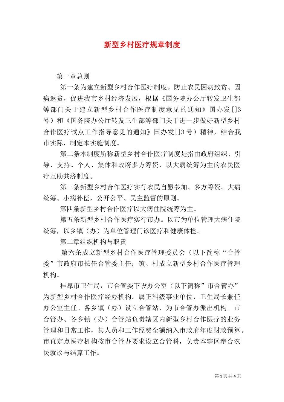 第1页共4页书山有路勤为径,学海无涯苦作舟。新型乡村医疗规章制度第一章总则第一条为建立新型乡村合作医疗制度。防止农民因病致贫、因病返...
