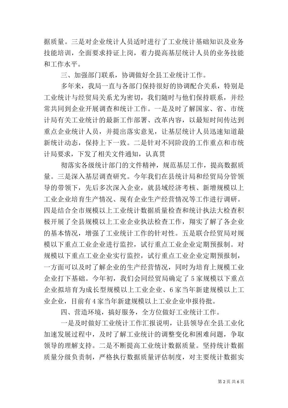 第1页共6页书山有路勤为径,学海无涯苦作舟。工业统计工作总结2021工业统计年终总结xx年我县工业统计工作,在市统计局的直接领导下,在县局...