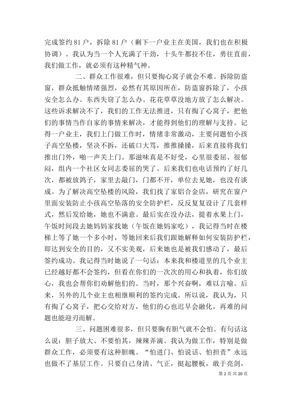 第1页共20页基层挂职锻炼工作感悟各位领导、同志们:时间过的很快,转眼四个月的挂职锻炼马上就结束了。第一个月在旧城改造工作,后三个月...