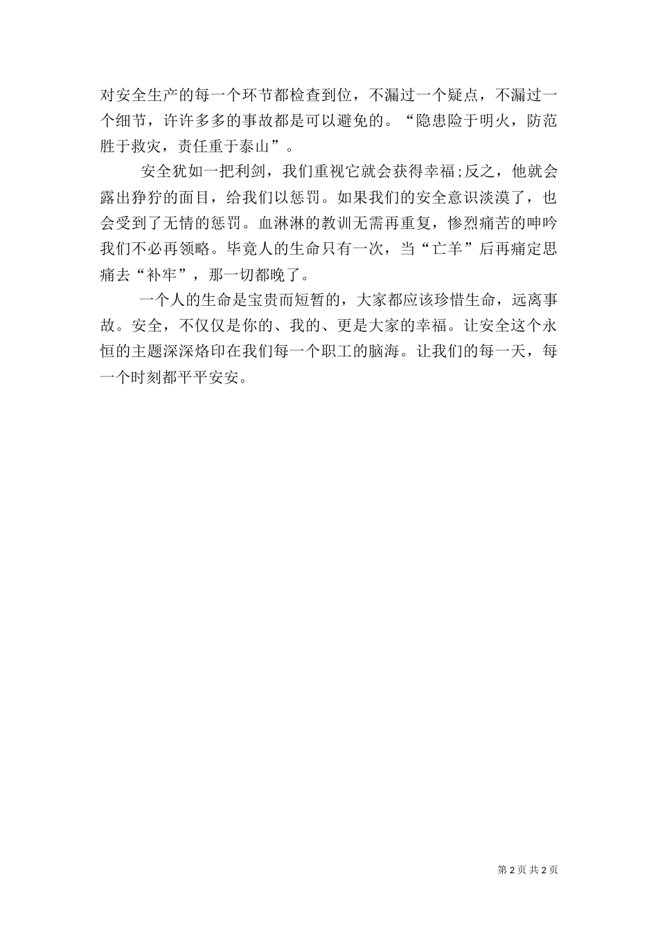 第1页共2页书山有路勤为径,学海无涯苦作舟。电力安全生产演讲稿对于电力企业来说,安全就是生命,安全就是发展,安全就是效益,安全是我们...
