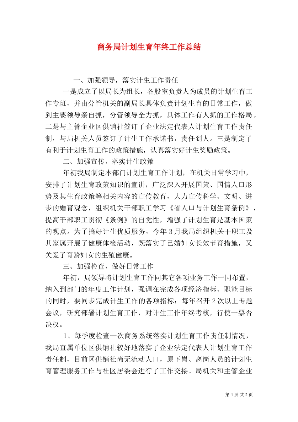 第1页共2页书山有路勤为径,学海无涯苦作舟。商务局计划生育年终工作总结一、加强领导,落实计生工作责任一是成立了以局长为组长,各股室负...