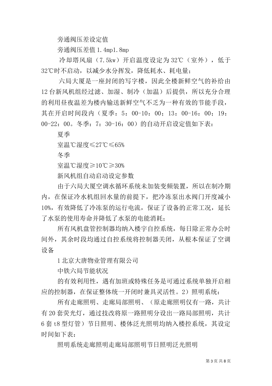 第1页共8页书山有路勤为径,学海无涯苦作舟。某大厦节能工作汇报北京大唐物业管理有限公司中铁六局节能状况中铁六局大厦节能工作汇报中铁六...