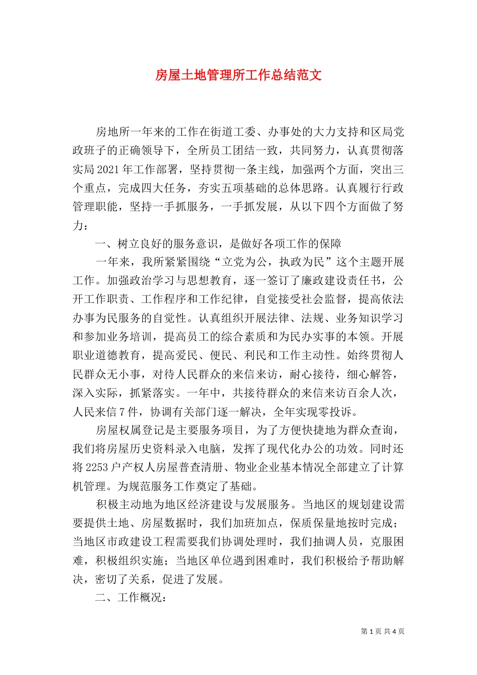 第1页共4页房屋土地管理所工作总结范文房地所一年来的工作在街道工委、办事处的大力支持和区局党政班子的正确领导下,全所员工团结一致,共...