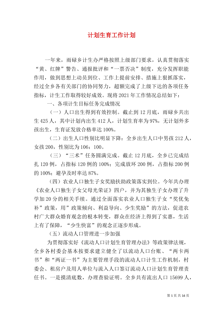 第1页共16页书山有路勤为径,学海无涯苦作舟。计划生育工作计划一年来,雨碌乡计生办严格按照上级部门要求,认真贯彻落实“黄、红牌”警告...