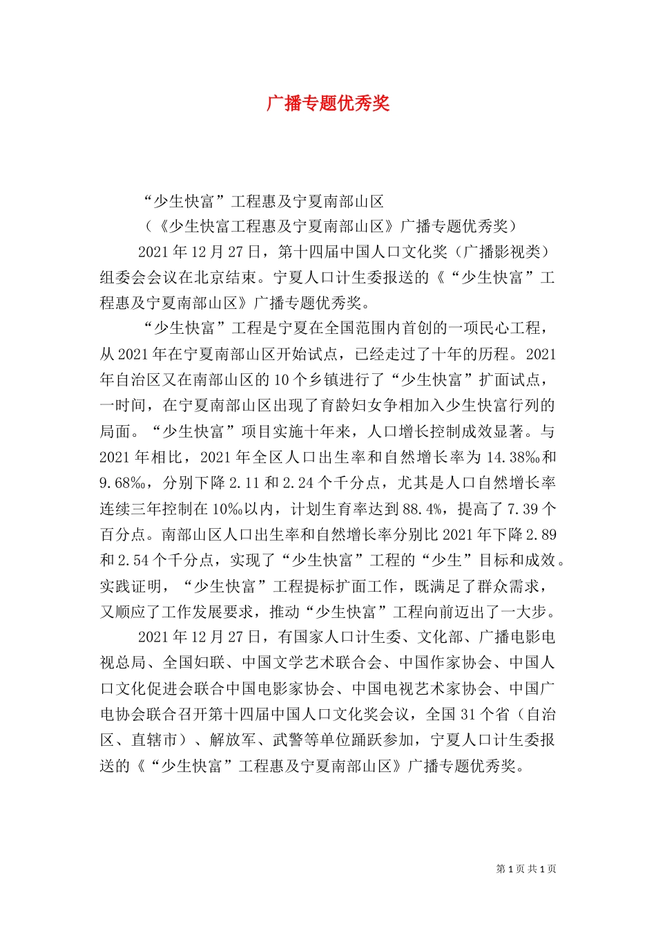 第1页共1页书山有路勤为径,学海无涯苦作舟。广播专题优秀奖“少生快富”工程惠及宁夏南部山区(《少生快富工程惠及宁夏南部山区》广播专题...